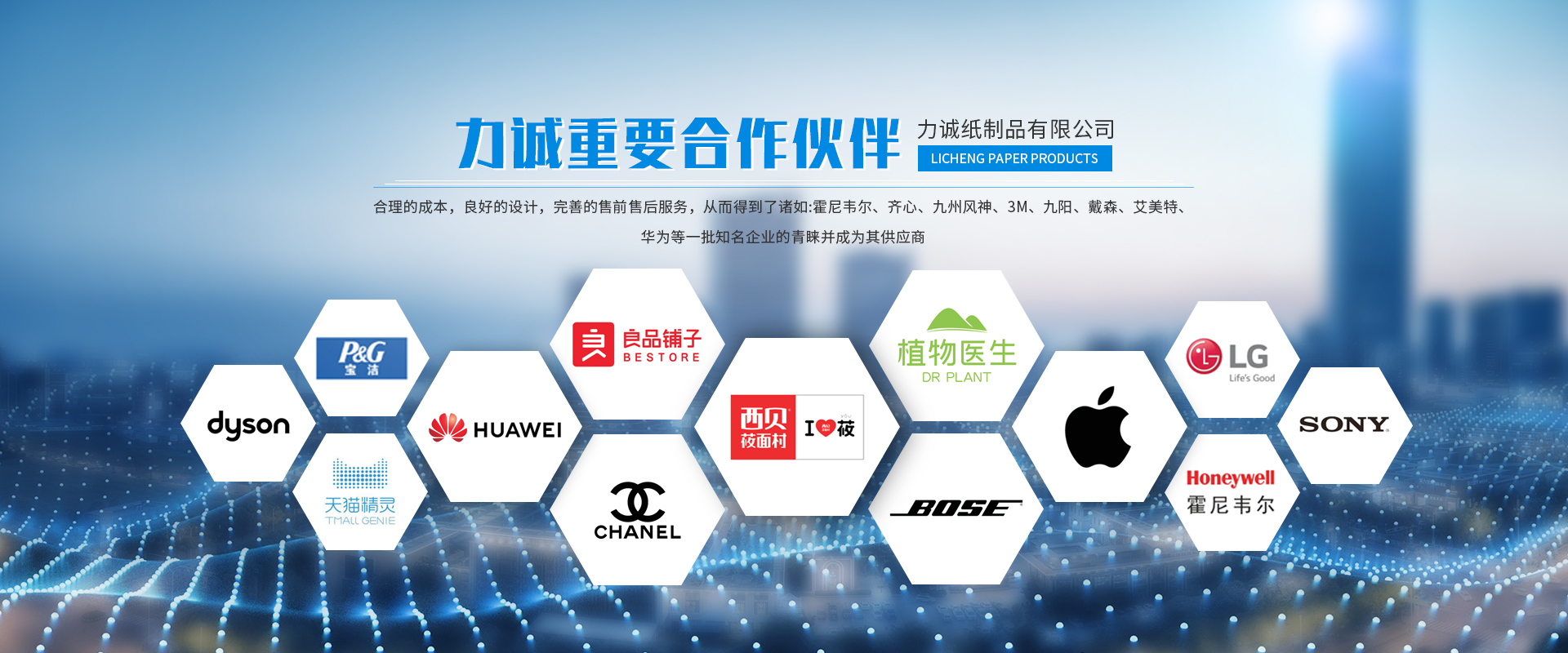 公司擁有數十名紙塑包裝開發設計工程師和成熟的模具裝配技術工人,擁有先進的電腦包裝和運輸過程模擬軟件,擁有實驗室和紙托性能檢測設施,以及嚴謹的IOC團隊保證了產品的開發快捷,設計新穎、獨特、優良品質,并使我們始終占據行業水平。合理的成本,良好的設計,完善的售前售后服務,從而得到了諸如:霍尼韋爾、齊心、九州風神、3M、九陽、戴森、艾美特、華為等一批知名企業的青睞并成為其供應商。